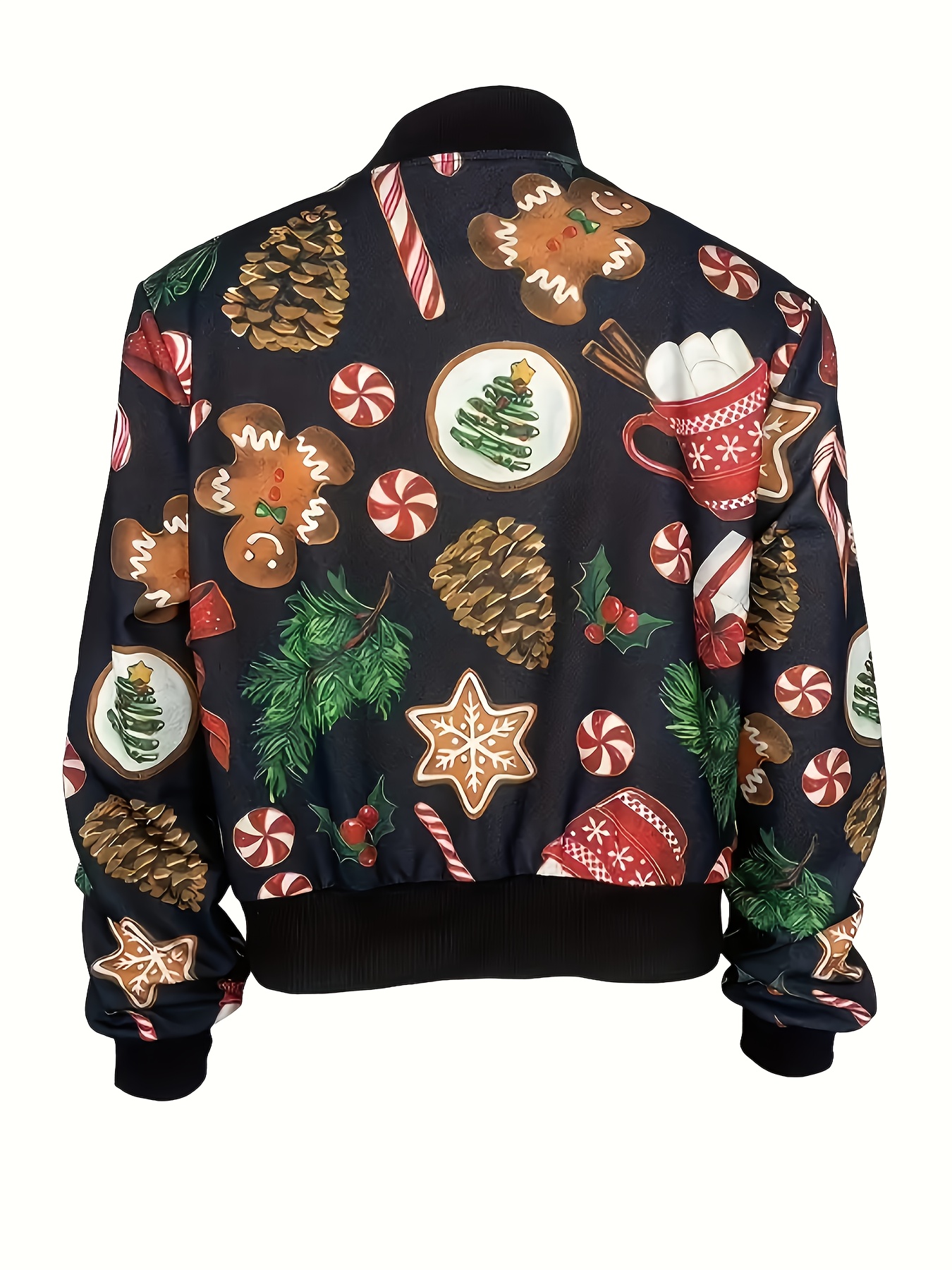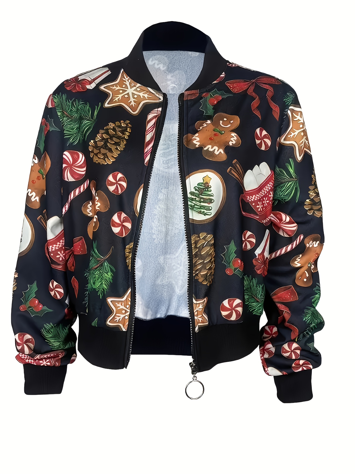 [Christmas Women's Jacket] Christmas Women's Polyester Zip-Up Jacket | Long Sleeve Round Neck Casual Coat, Festive Holiday Motifs, Relaxed Fit, Nonstretch Fabric, Durable Material, Hand Wash Only
