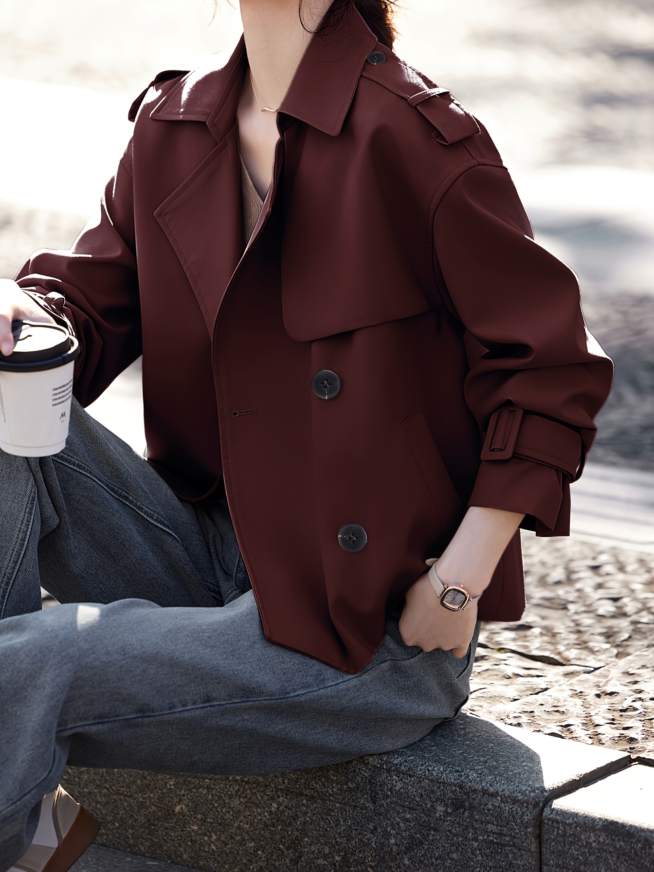 [Elegant Blazer] Elegant Brown Women's Blazer | Structured Non-Stretch Jacket, Machine Washable Chic Outerwear for Everyday & Formal Events, Minimalistic Design, Sophisticated Craftsmanship