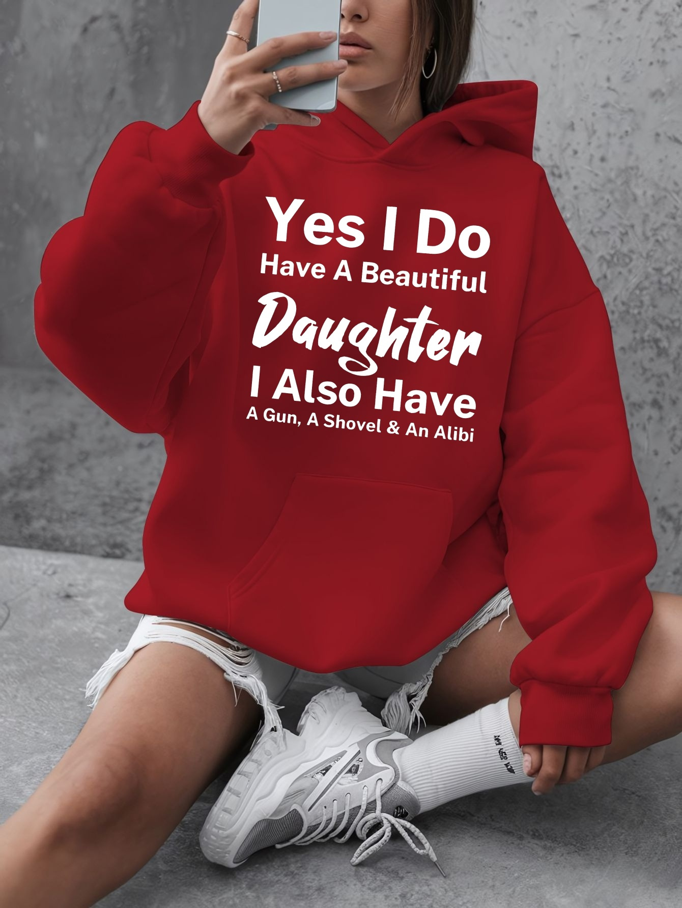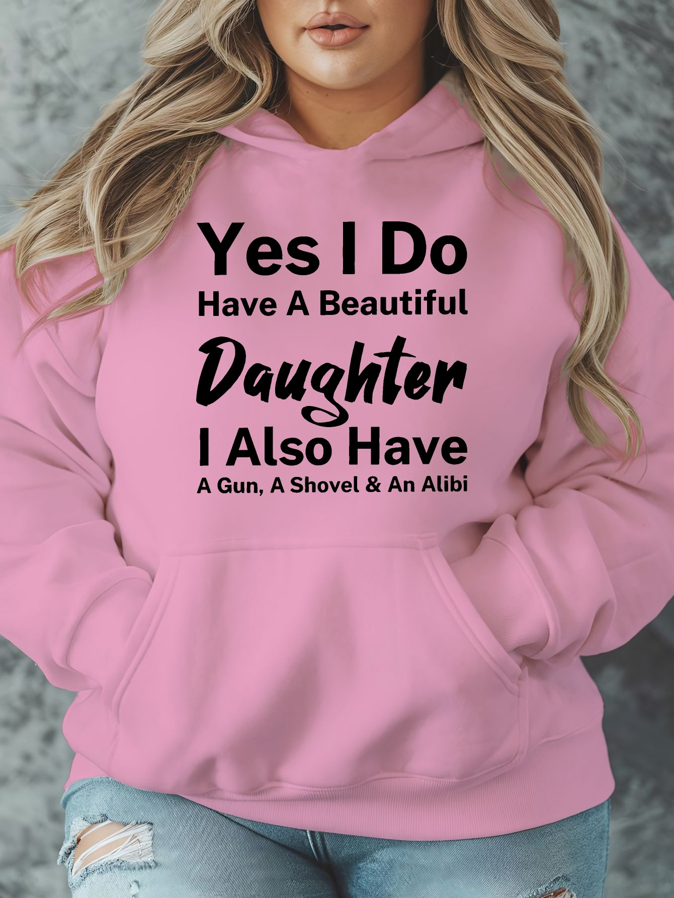 [Humorous Sweatshirt] Plus Size Women's Casual Sweatshirt | Yes I Do s - Humorous "Yes I Do Have a Beautiful Daughter" Print, 100% Polyester, Long Sleeve Round Neck Pullover with Pockets, 250gsm Warm Fall Winter Tops