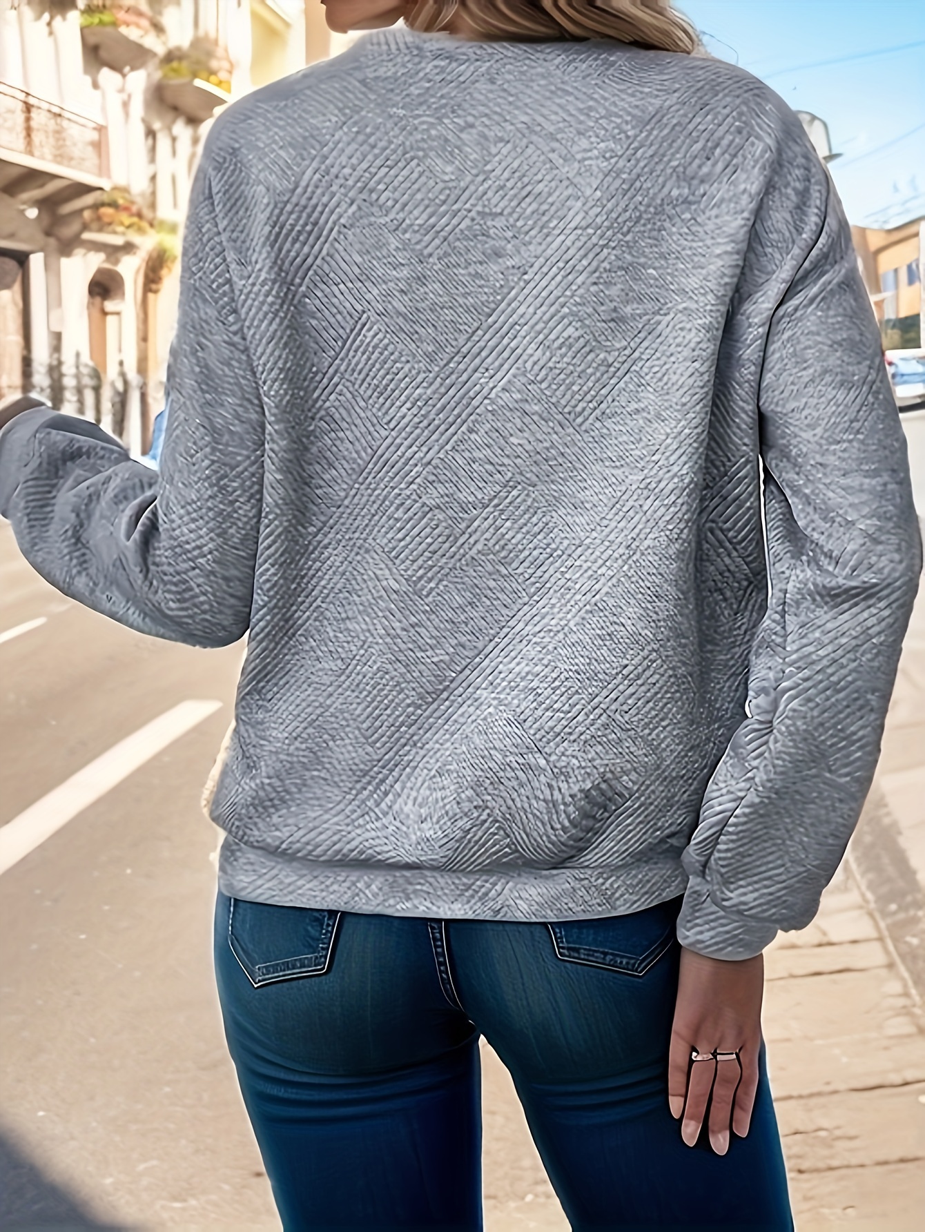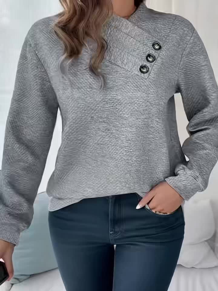 Plus Size, Autumn and Winter New Large Size Women's Button-Decorated Pullover Solid Color Casual Comfortable Long Sleeve Textured Design Sweatshirt