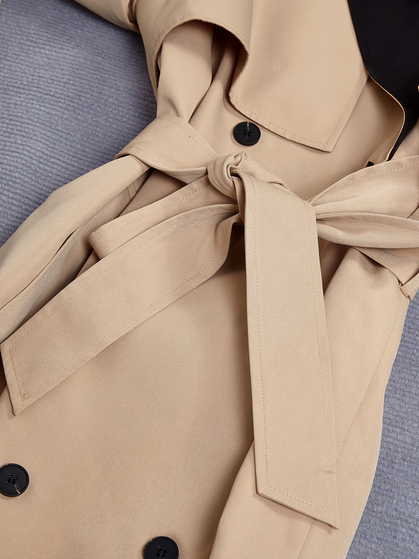 Elegant Beige & Black Color Block Trench Coat with Lapel Collar - Long Sleeve, Mid-Length, Button-Up Outerwear for Women, Perfect for Fall 2025, Stylish Commuter Wear | Chic Lapel Collar | Structured Design