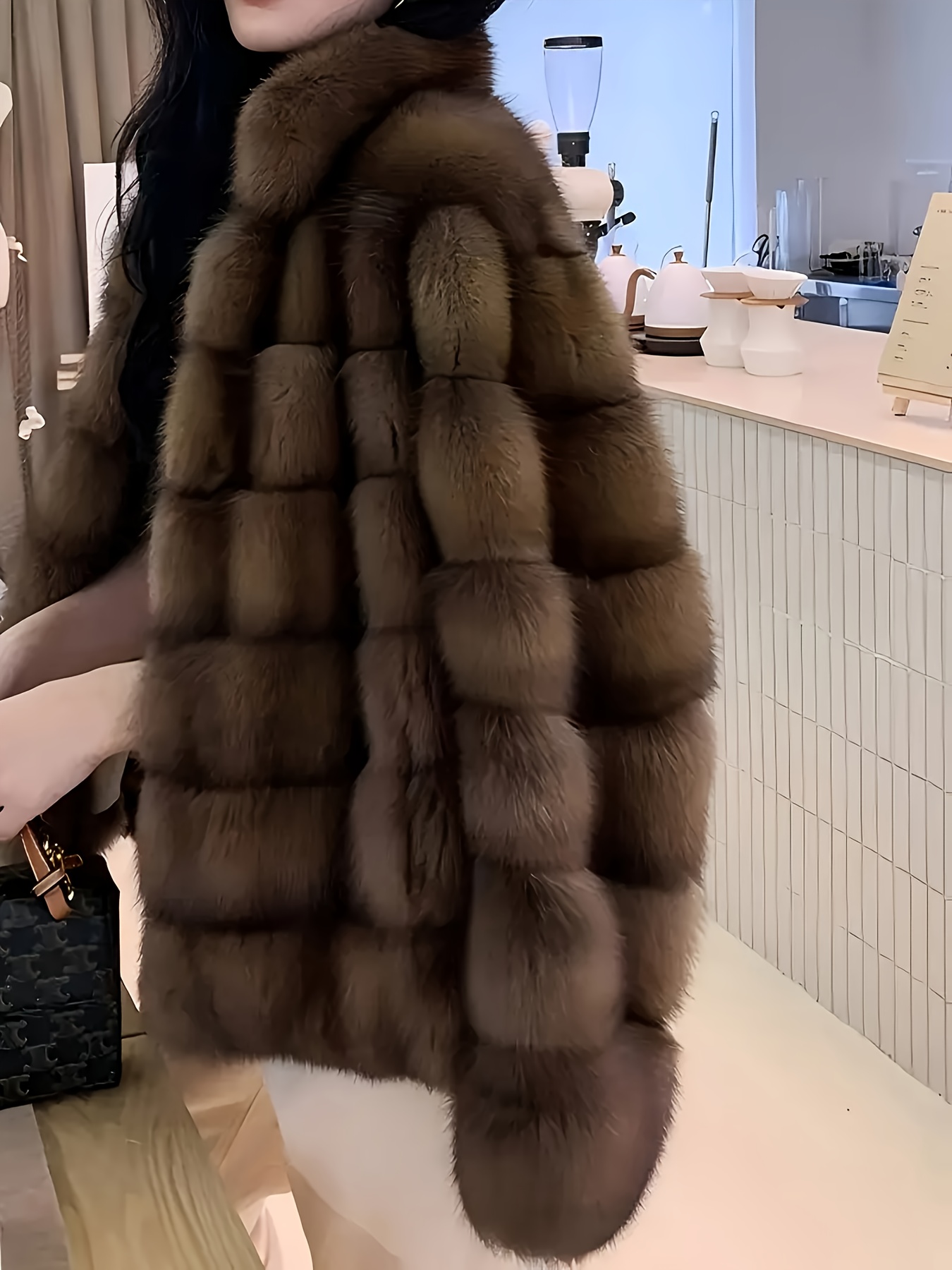 Women'S Elegant Faux Fur Coat - Ultra-Soft Plush Winter Jacket with Contrast Trim, Long Sleeves & Flared Hem, Loose Fit for Casual & Formal Occasions, Fall/Winter Fashion Essential, Winter Outerwear, Sophisticated Style, Luxurious Texture