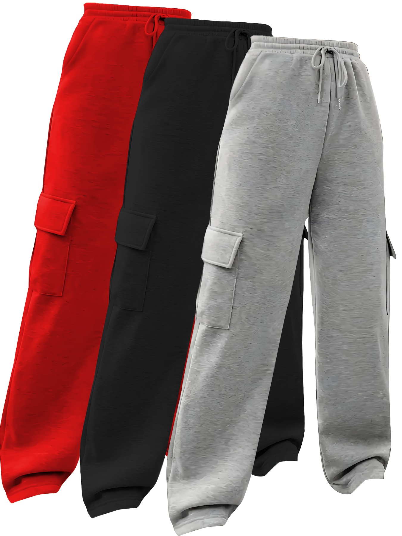 3pcs Women'S Cargo Pants - Solid Color Athletic Joggers with Drawstring Waist, Multiple Pockets, Elastic Cuffs & Hem, All-Season Comfort for Casual & Wear, Jogging Pants, Wear, Functional Pockets, Durable Fabric