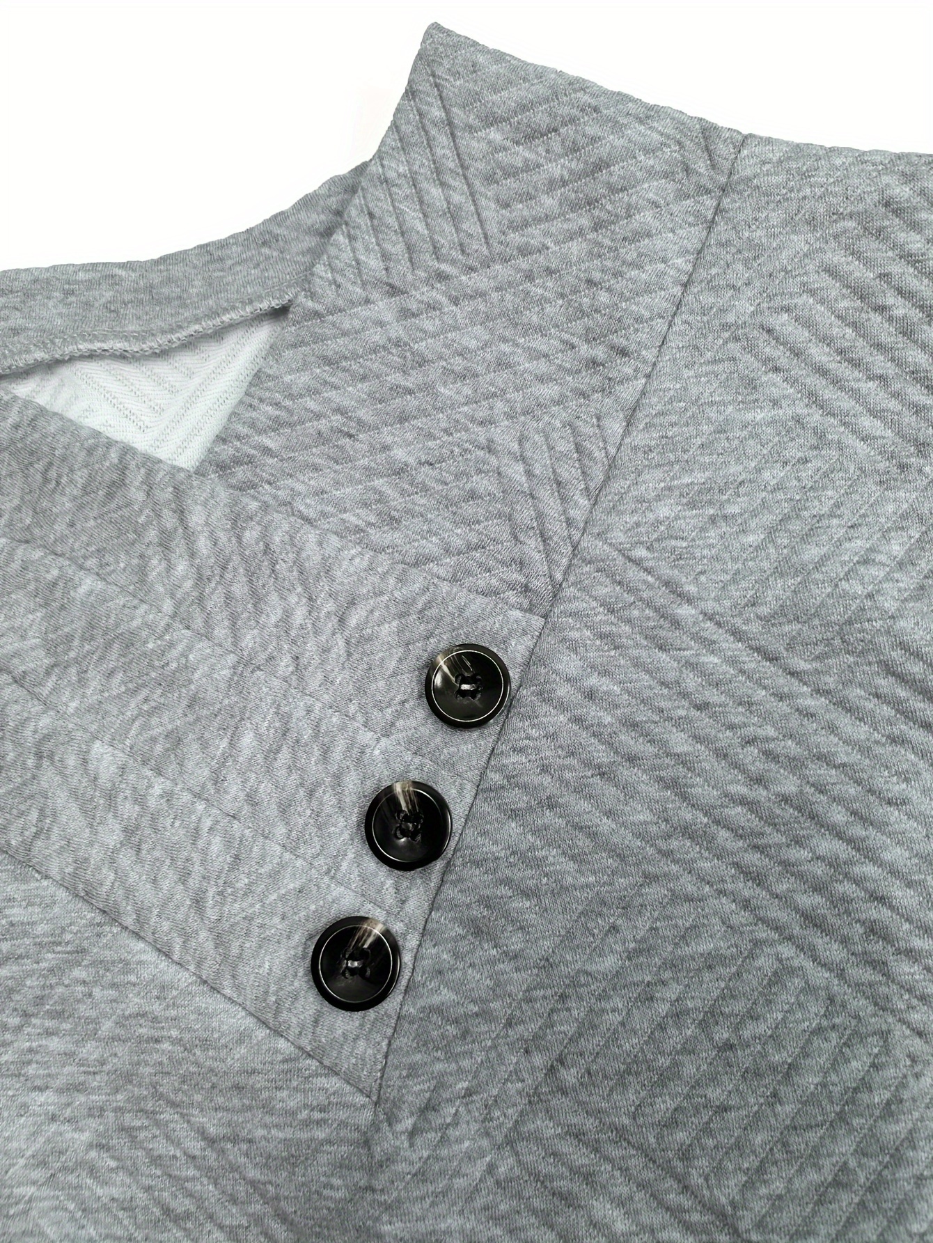 Plus Size, Autumn and Winter New Large Size Women's Button-Decorated Pullover Solid Color Casual Comfortable Long Sleeve Textured Design Sweatshirt