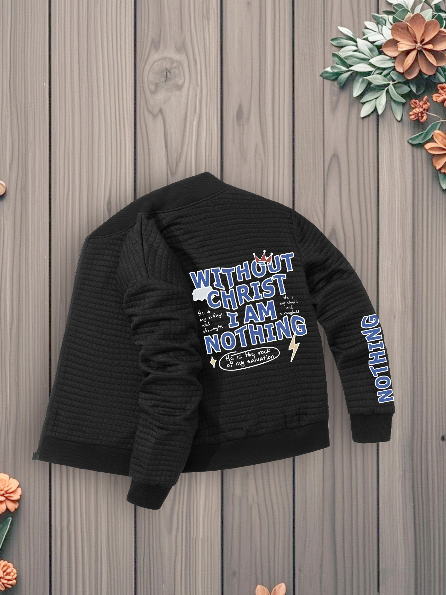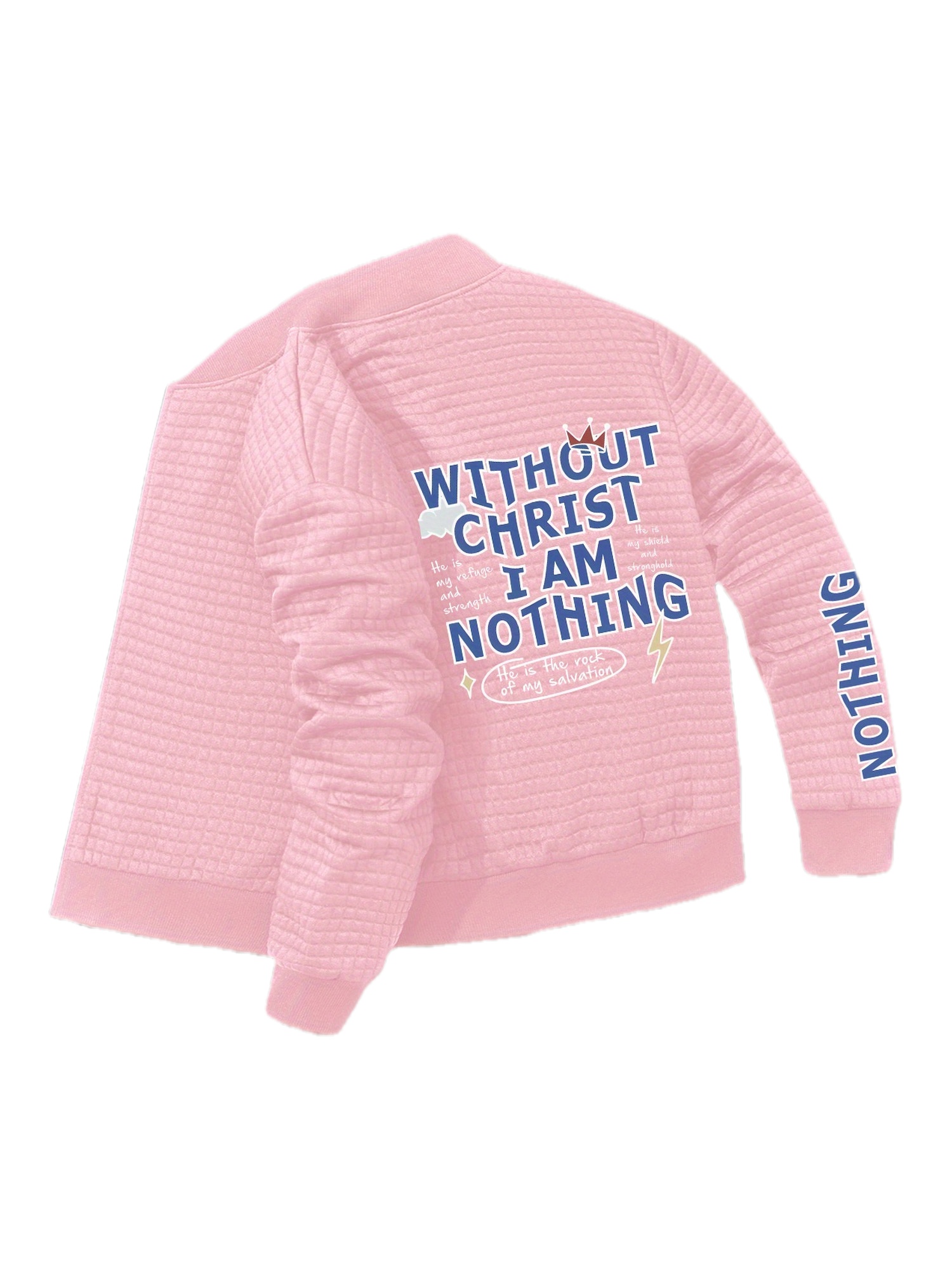 Women's Jacket - Christian Faith Statement Outerwear, Zip-Up Baseball Collar Coat, Machine Washable Polyester Jacket for Everyday & Special Occasions, Versatile Layering, Bold Print Design, Quality Stitching, Stylish Coat, Trendy Women